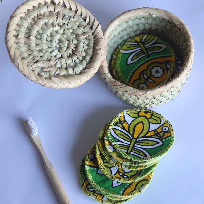 Borrowing from traditional and cultural practices can help us solve our over consumerism and help as adapt to climate change. The leso fabric is an integral part of marriage and birth celebrations because of its absorbency and lively colors. We have stitched triple layered leso make up pads to help you ditch single use cotton pads. Comes tacked in a cute little basket for storage and ease of use.