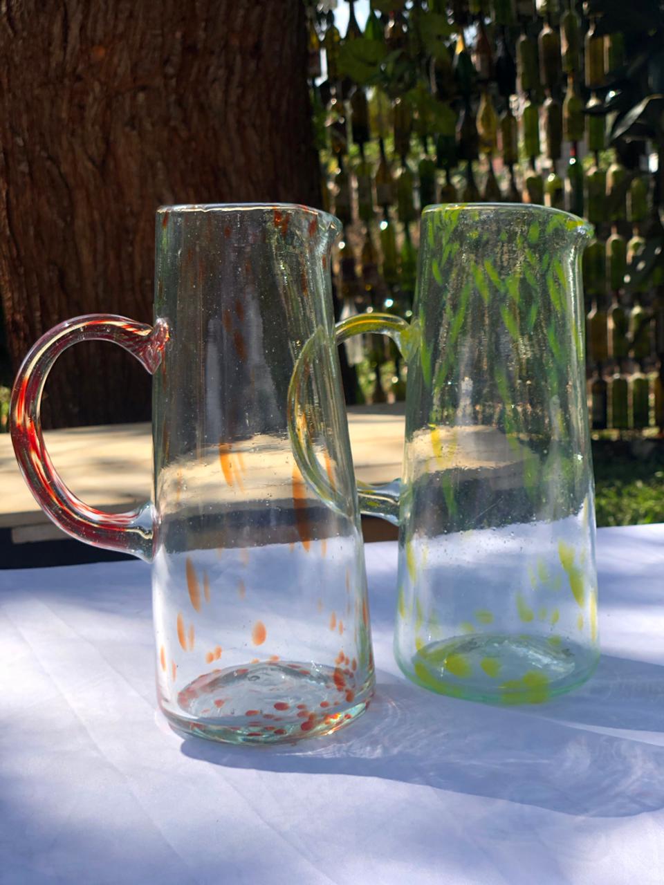 Part of the madoadoa collection,waste glass blown into a colourful pitcher for entertaining.