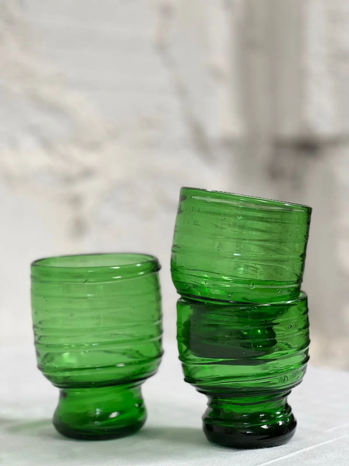 Experience the perfect blend of form and function with our Stackable Spiral Tumblers in vibrant green. Each glass is meticulously crafted from 100% recycled materials, featuring a captivating spiral pattern that transforms ordinary beverages into visual delights.