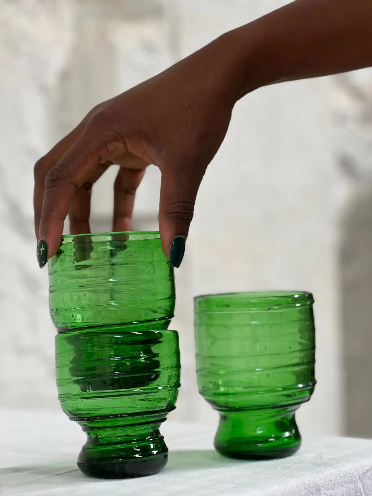 Durable enough for daily use and dishwasher safe, these tumblers make a statement about your environmental values without sacrificing practicality. The captivating green tint catches light beautifully, adding a touch of sustainable elegance to your table setting.