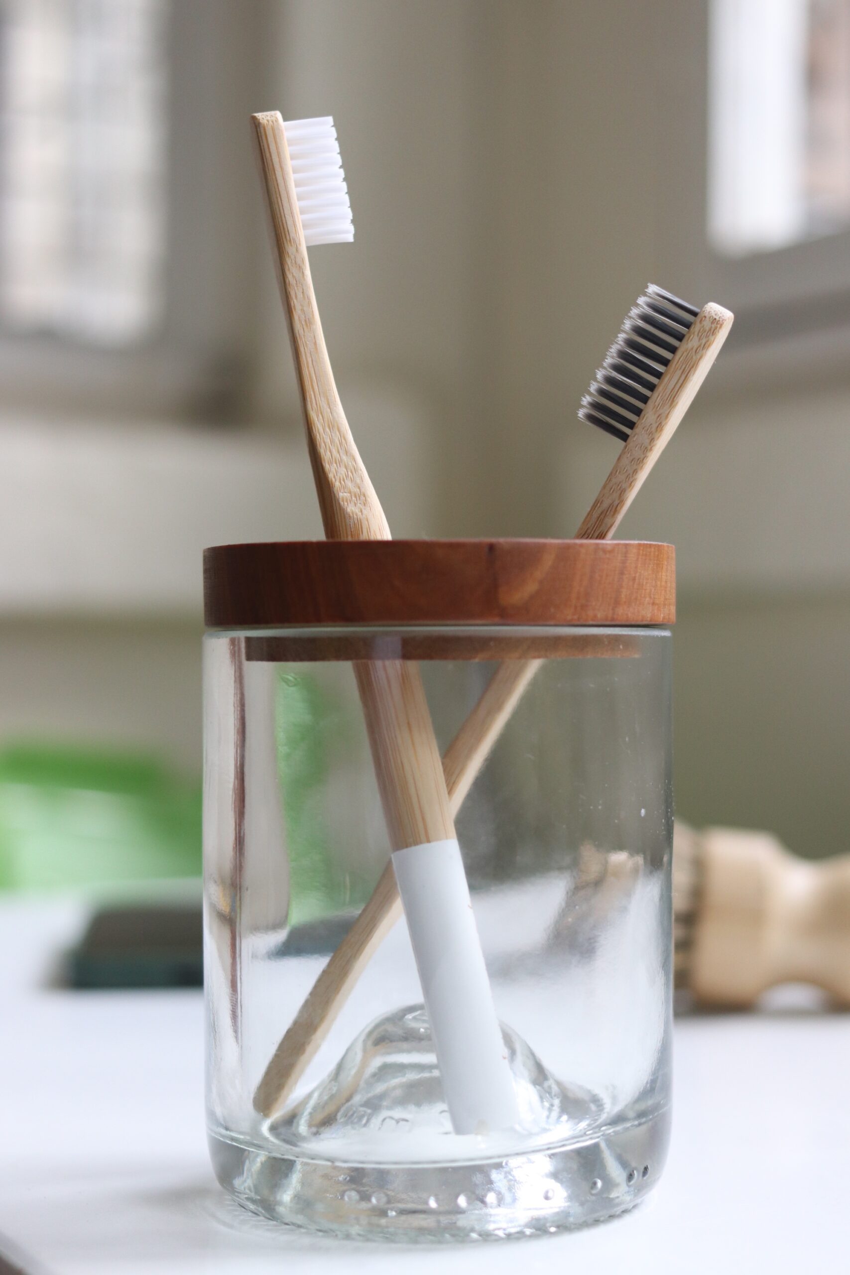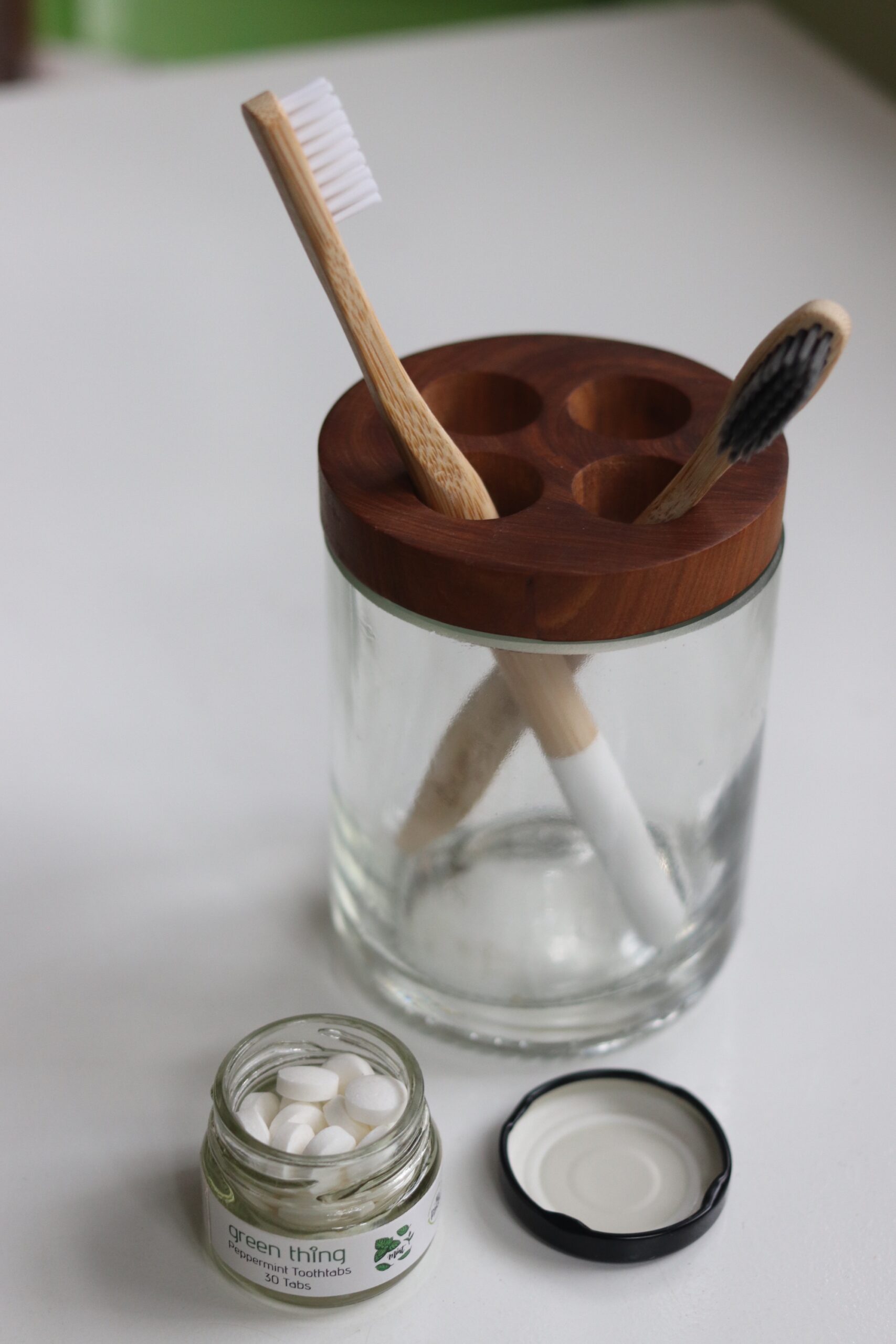 Discover the perfect blend of sustainability and style with our upcycled toothbrush holder. Crafted from reclaimed wood and repurposed elf glass waste, each holder is a unique eco-friendly statement for your bathroom, showcasing the beauty of responsible living.