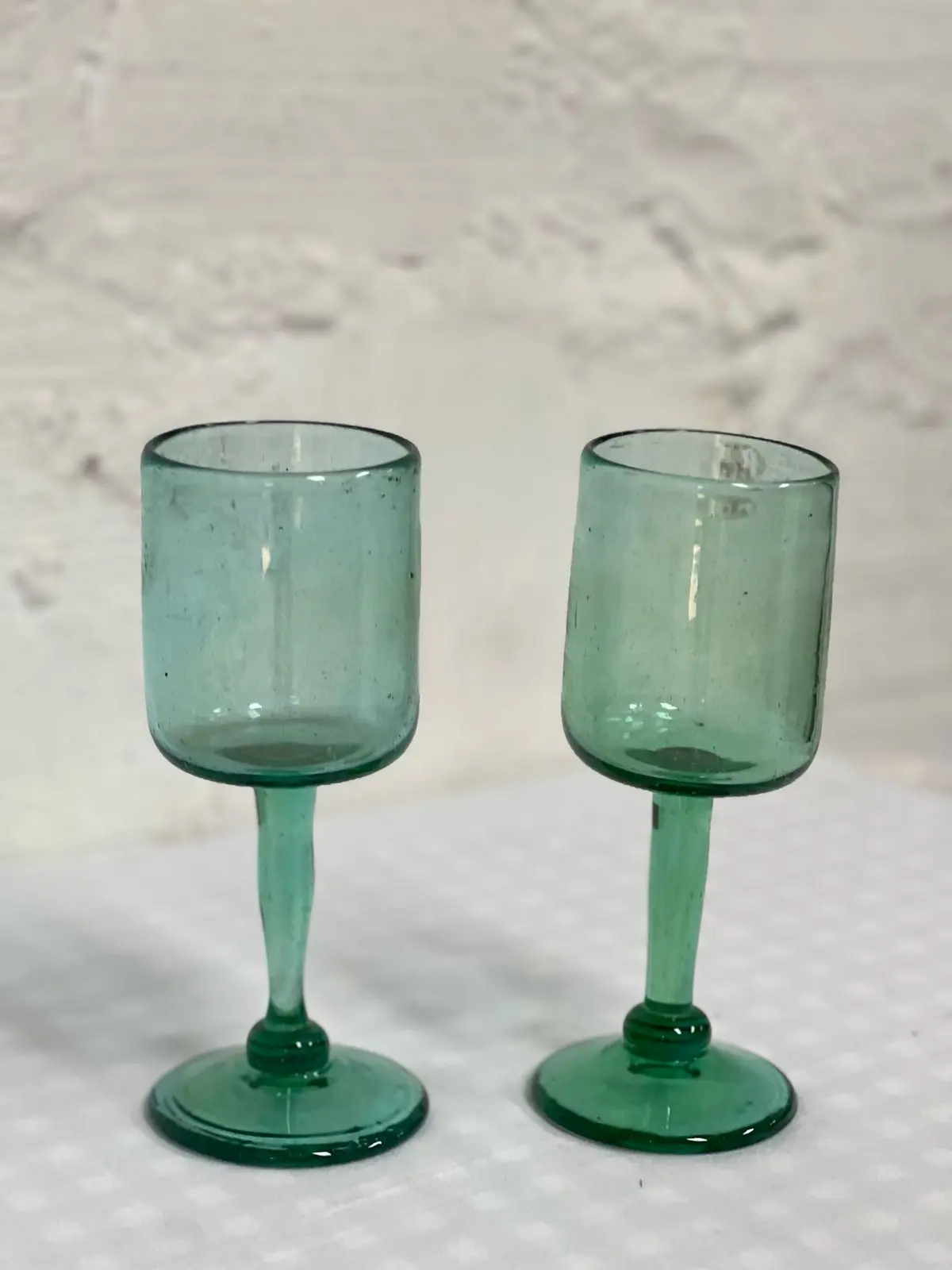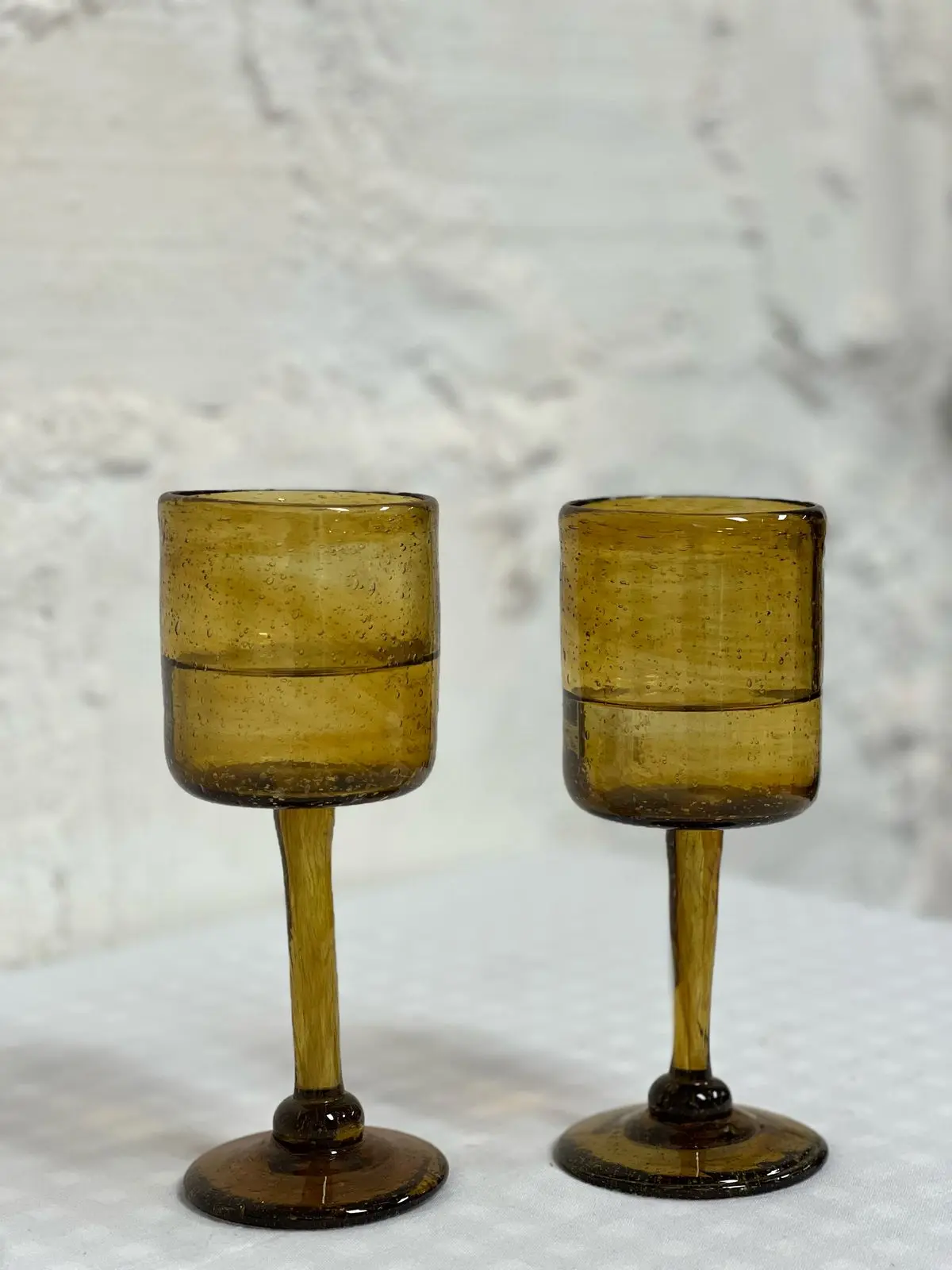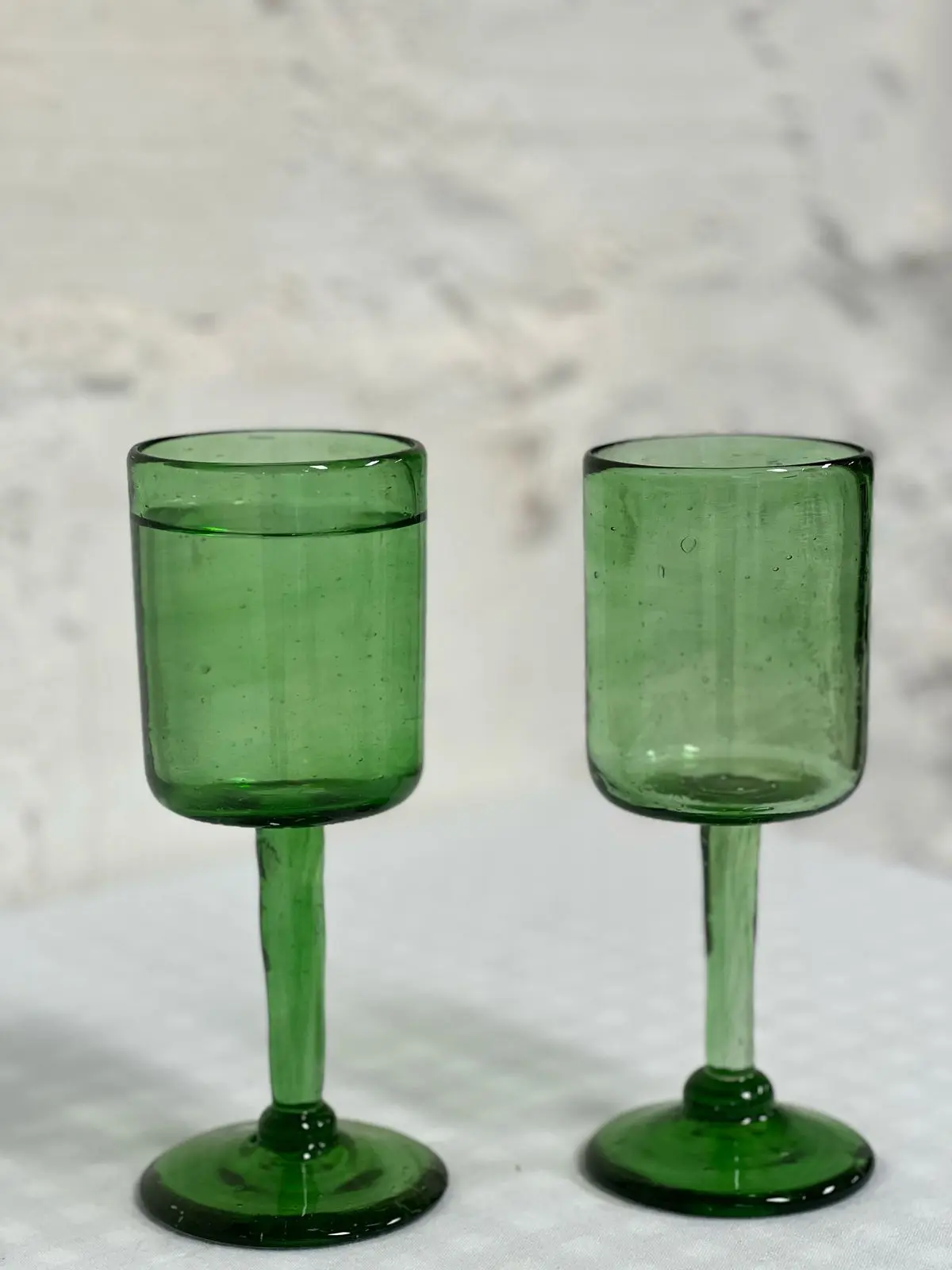 Elegant 300ml recycled glass wine glasses available in green, brown, and blue tints. These eco-friendly goblets bring sustainable style to your table while reducing glass waste in landfills.